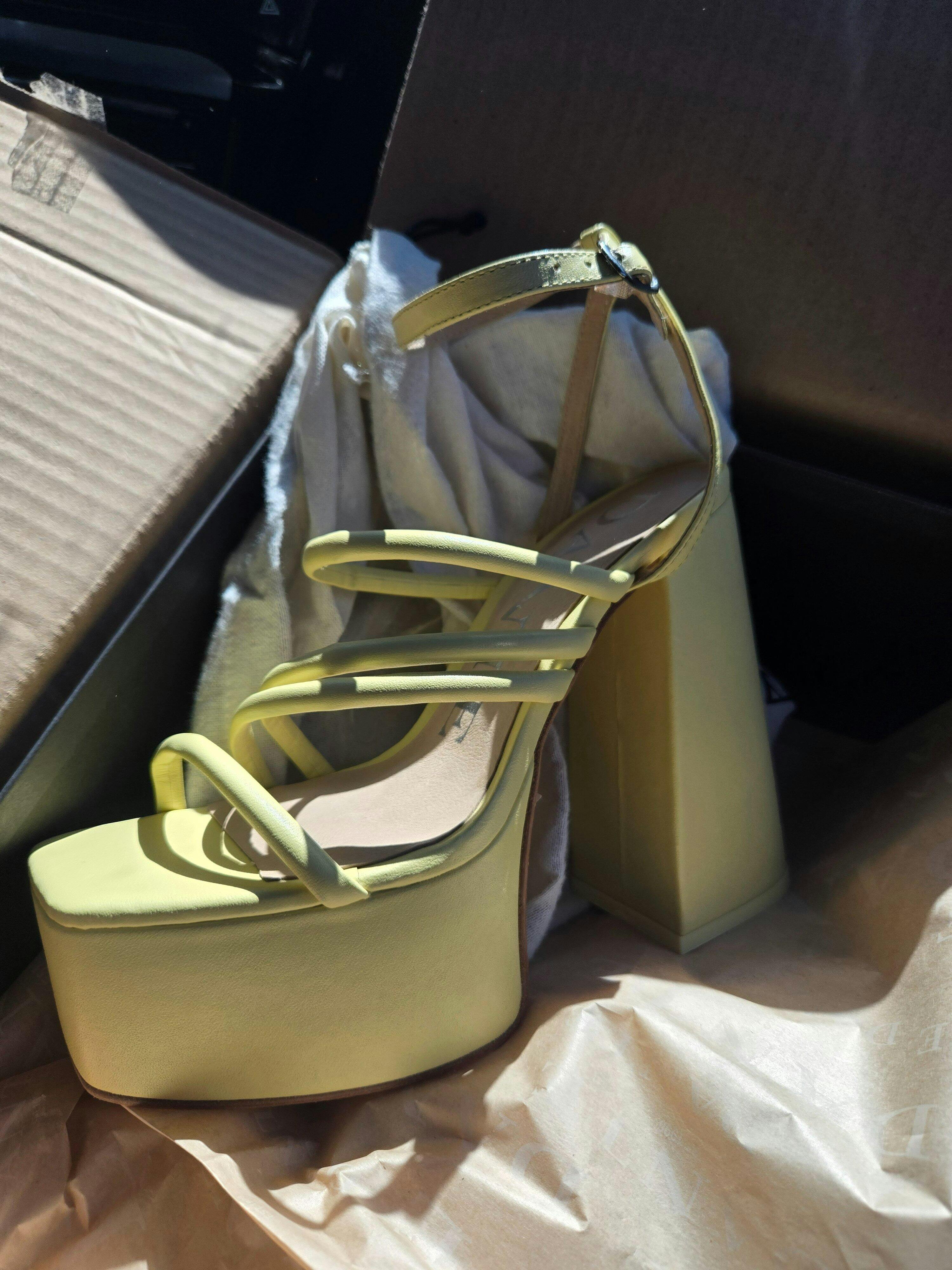 Atrevidas y distintas, nuestras sandalias de plataforma Lyla se presentan en piel de tacto suave y tacón alto extra ligero. Sus tirantes combinan con un look romántico pero sexy para destacar en verano / primavera.